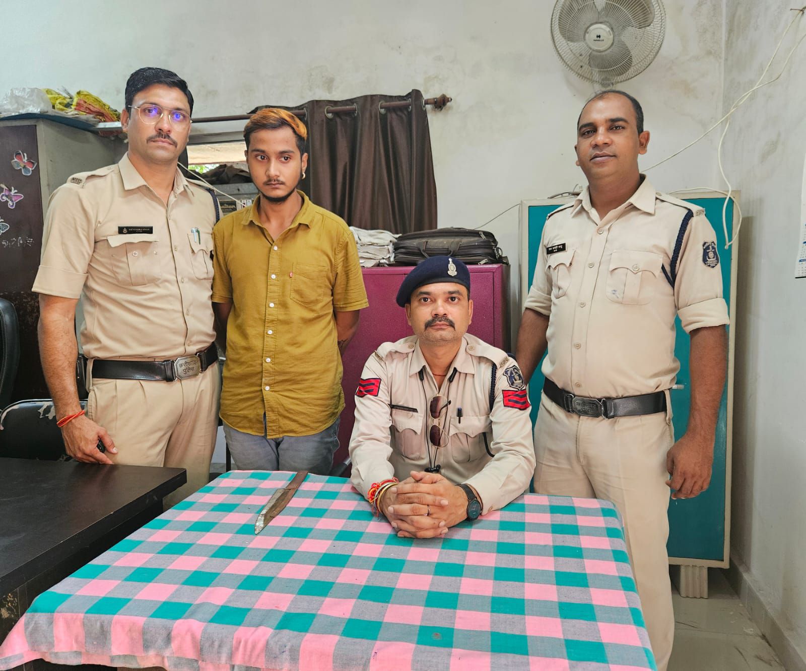 बिलासपुर,,, पुलिस अधीक्षक रजनेश सिंह के निर्देश पर सिविल लाईन पुलिस द्वारा लोहे का धारदार चाकु लहराकर आमजनों को डाराने धमकाने वाले आरोपी को किया गिरफ्तार,, मुखबीर सूचना मिला की जतिया तालाब मिनी बस्ती के पास एक व्यक्ति धारदार चाकु जैसे हथियार लेकर लहराते आम जनता एवं आसपास के आने जाने वाले लोगों को डरा धमका कर भयभीत कर रहा है! उक्त सूचना से तत्काल श्रीमान पुलिस अधीक्षक रजनेश सिंह को अवगत कराया गया जिनके द्वारा उक्त व्यक्ति को तत्काल गिरफ्तार कर कार्यवाही करने, अतिरिक्त पुलिस अधीक्षक शहर उमेश कश्यप एवं नगर पुलिस अधीक्षक उमेश प्रसाद गुप्ता को निर्देश दिये उक्त निर्देश के पालन में थाना प्रभारी सिविल लाईन प्रदीप आर्य द्वारा हमराह स्टाफ के मौके पर पहुँचे जहाँ एक व्यक्ति लोहे का धारदार चाकू दिखाकर लहराते लोगों को डरा धमका रहा था। जिसे घेराबंदी कर पकडकर हिरासत में लेकर उसे पुछताछ करने अपना नाम पार्थ उर्फ सैम मण्डलोई पिता बंशी लाल उम्र 19 साल निवासी रामा लाईफ सिटी थाना सकरी जिला बिलासपुर (छ.ग.) का निवासी होना बताया जिसके कब्जे से एक नग लोहे का धारदार चाकू को विधिवत जप्त कर धारा 25, 27 आर्म्स एक्ट का अपराध पंजीबद्ध कर आरोपी को गिरफ्तार कर माननीय न्यायालय के समक्ष पेश किया गया है।