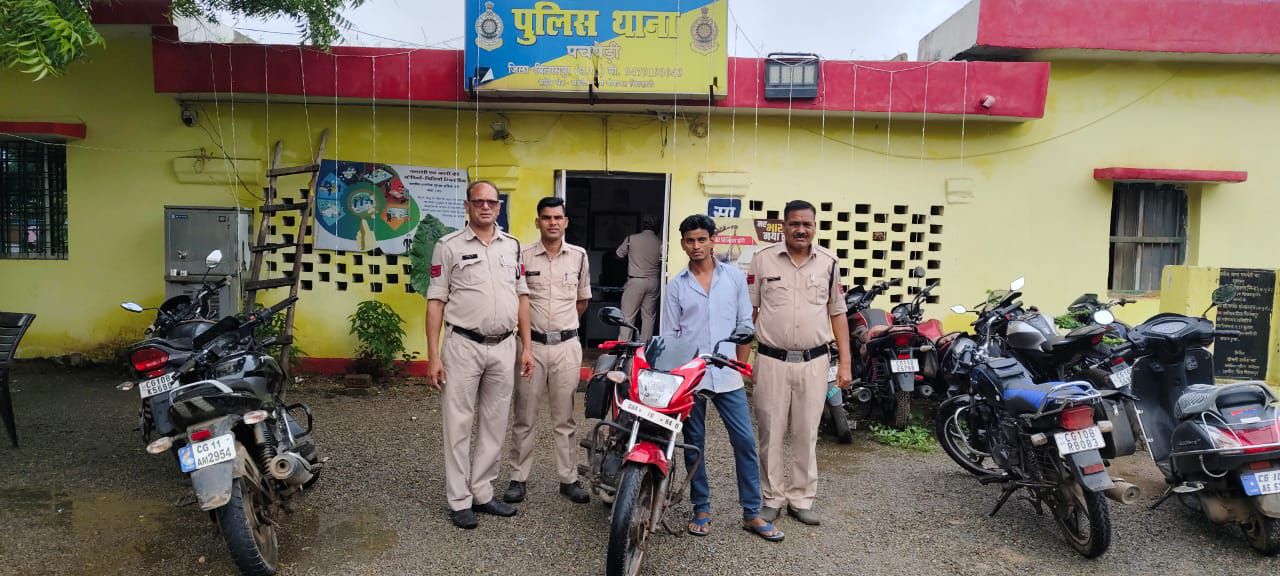 बिलासपुर,,, प्रार्थी सत्तू राम केवट पिता हरी केवट निवासी मुसवाथोडी लवन बलोदाबाजार के मोटर साइकिल सीजी 04 LU 8480 कीमती 10000 ₹ को अज्ञात व्यक्ति चोरी कर लिया है कि रिपोर्ट पर अपराध दर्ज कर श्रीमान पुलिस अधीक्षक महोदय श्री रजनेश सिंह के निर्देशानुसार, अतिरिक्त पुलिस अधीक्षक महोदय ग्रामीण श्रीमती अर्चना झा के मार्गदर्शन में आज दिनांक 22.08.24 आरोपी के कब्जे से चोरी हुई मोटर साइकिल सीजी 04LU 8480 कीमती लगभग 10000₹ को जब्त कर विधी अनुसार कार्यवाही की गई है। इस कार्यवाही में उनी ओपी कुर्रे, प्रआर हरवेंद खूटे, आर हरि शंकर चंद्रा का विशेष योगदान रहा.