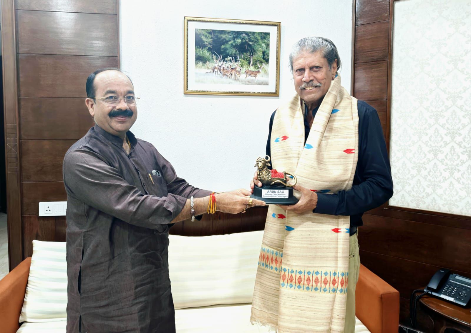 बिलासपुर,,, उप मुख्यमंत्री अरुण साव ने आज राष्ट्रीय खेल दिवस पर भारत को पहला वन-डे क्रिकेट वर्ल्ड कप दिलाने वाले कप्तान और पूर्व क्रिकेटर तथा प्रोफेशनल गोल्फ टूर ऑफ इंडिया के अध्यक्ष कपिल देव से सौजन्य मुलाकात की। नई दिल्ली के छत्तीसगढ़ सदन में हुई मुलाकात के दौरान दोनों के बीच छत्तीसगढ़ में खेल गतिविधियों को बढ़ावा देने पर चर्चा हुई।