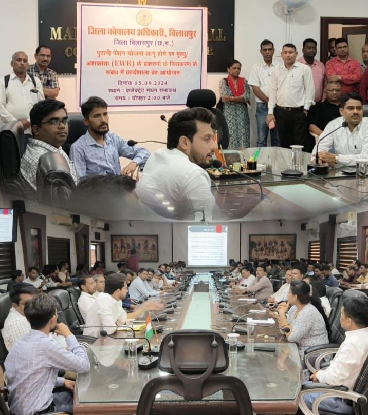बिलासपुर,,, छत्तीसगढ़ शासन वित्त विभाग के निर्देशानुसार कलेक्टर श्री अवनीश शरण के मार्गदर्शन में जिला कोषालय द्वारा नवीन पेंशन योजना से पुराने पेंशन लागू होने के बाद पेंशन व परिवार पेंशन के प्रकरणों के निराकरण हेतु जिले के समस्त आहरण एवं संवितरण अधिकारियों के लिए एक दिवसीय कार्यशाला का आयोजन जिला कार्यालय के मंथन सभा कक्ष में किया गया। इसमें जिले के सभी आहरण एवं संवितरण अधिकारियों को ई.आर.एम. ईडब्ल्यू. आर. के प्रकरणों के निराकरण के संबंध में वित्त विभाग के निर्देशों व प्रकरण के निराकरण में आने वाली समस्याओं के संबंध में विस्तृत जानकारी दी गई। इस कार्यशाला में कोषालय अधिकारी जसपाल सिंह, सहायक संचालक ताराचंद रत्नाकर, अतिरिक्त कोषालय अधिकारी सौमित्र प्रधान, सहायक कोषालय अधिकारी सुजीत कुमार पात्रे, तरला नुरूटी, प्रोग्रामर चंद्रहास कटियार, अनिल महिलांगे, मोहनिस पाण्डेय साहित अन्य कर्मचारी उपस्थित थे।