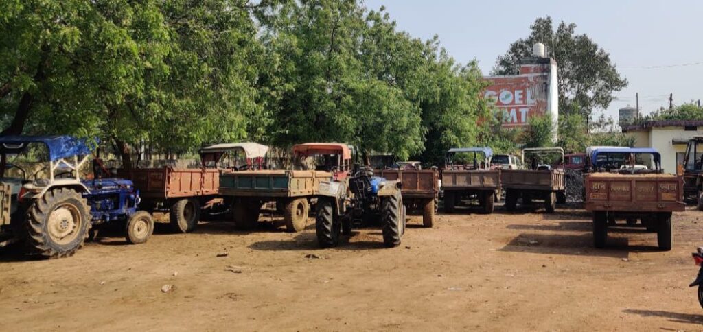रेत से भरे 07 ट्रेक्टर एवं उत्खनन में प्रयुक्त 01 जेसीबी को किया गया जप्त