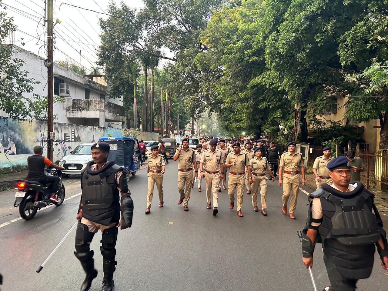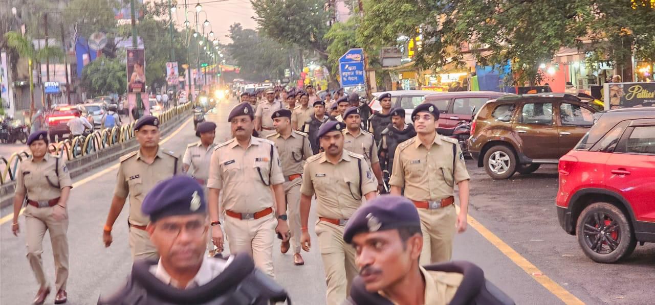 ईद और गणपति विसर्जन को ध्यान में रखकर रजनेश सिंह (भा.पु.से.) पुलिस अधीक्षक, जिला बिलासपुर (छ.ग.) द्वारा स्वयं बल का नेतृत्व करते हुये शहर में सभी क्षेत्रों में पैदल फ्लैग मार्च किया गया । साम्प्रदायिक सौहाद्र, शांति एवं व्यवस्था बनाये रखने हेतु इस अवसर पर नगर की चाक चौबंद पुलिस व्यवस्था रखी गई है। अधिक भीड़ व जमाव वाले स्थानों पर अधिक से अधिक बल फिक्स प्वाइंट के रूप में ड्यूटी पर लगाये गये हैं एवं थाने की पेट्रोलिंग के साथ ही अतिरिक्त विशेष पेट्रोलिंग की व्यवस्था रखी गई है, जो निरन्तर पेट्रोलिंग कर असामाजिक तत्वों की अवांछित गतिविधयों पर तत्काल प्रभावी कार्यवाही करेंगे। फ्लैग मार्च में सभी अतिरिक्त पुलिस अधीक्षक, राजपत्रित अधिकारी, थाना प्रभारीगण एवं तक़रीबन 300 मुस्तैद जवान फ्लैग मार्च में शामिल थे।