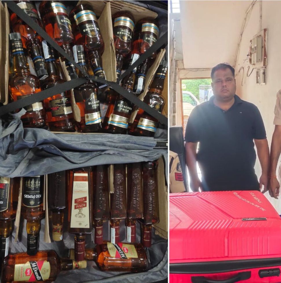 पुलिस के अनुसार आरोपी से Blenders Pride का 10 बॉटल, Royal stag whisky का 05 बॉटल, mecdowells no 1 whisky का 3 और 100 pipers जब्त किया गया है। सभी बाटल पर मध्य प्रदेश का हॉलमार्क लगा हुआ पाया गया।