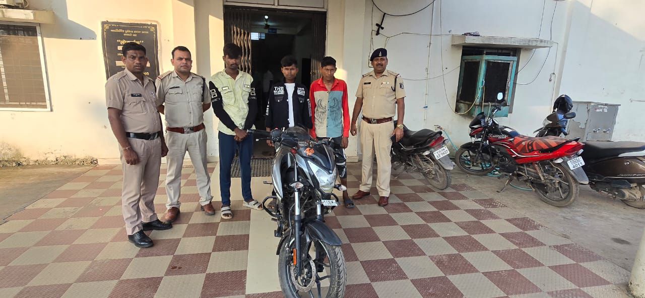 बिलासपुर,,, थाना सकरी अपराध क्रमांक 673 / 24 धारा 305 (a) 331 (4) बीएनएस , प्रार्थी दिनेश साहू पिता विजय साहू उम्र 22 वर्ष निवासी गायत्री मंदिर के सामने सकरी थाना सकरी जिला बिलासपुर द्वारा दिनांक 16/9 /24 को थाना सकरी में रिपोर्ट दर्ज कराया की वह अपनी बजाज पल्सर मोटर साइकिल एन एस 125 , क्रमांक सीजी 10 BM 6898 को अपने घर के अंदर खड़ी किया था सुबह उठकर देखा तो मोटरसाइकिल घर पर नहीं थी कोई अज्ञात चोर, घर में खड़ी हुई पल्सर मोटरसाइकिल को चोरी कर ले गया था प्रार्थी की रिपोर्ट पर अज्ञात आरोपी के विरुद्ध धारा 305 ए 331(4) बीएनएस के तहत अपराध पंजीबद्ध कर विवेचना में लिया गया , विवेचना के दौरान सकरी पुलिस को जरिए मुखबिर सूचना प्राप्त हुई की चोरी गई मोटरसाइकिल को आदतन आरोपी मनीष यादव उर्फ चूसली पिता यशवंत यादव उम्र 22 वर्ष निवासी बंधवा पारा सकरी एवं अजय साहू पिता महेंद्र साहू उम्र 19 वर्ष निवासी गायत्री मंदिर के पास सकरी तथा मोनू उर्फ महेंद्र प्रजापति पिता रामकुमार प्रजापति उम्र 23 वर्ष निवासी सकरी के द्वारा चोरी कर तालाब में छुपा कर रखा गया है ! मुखबीर की सूचना से अतिरिक्त पुलिस अधीक्षक शहर उमेश कश्यप एवं नगर पुलिस अधीक्षक सिविल लाइन बिलासपुर श्री उमेश प्रसाद गुप्ता (IPS)को अवगत कराकर एवं कार्यवाही हेतु दिशा निर्देश प्राप्त कर संदेहियो से पूछताछ किया गया जो अपराध करना स्वीकार किये आरोपियों के कब्जे से चोरी गई मोटरसाइकिल को बंधवा तालाब सकरी से तीनों आरोपियों के निशानदेही पर जप्त कर कब्जा पुलिस लिया गया है आरोपियों को गिरफ्तार कर न्यायिक रिमांड पर भेजा गया है प्रकरण को सुलझाने में उप निरीक्षक हेमंत आदित्य, सहायक उप निरीक्षक राजकुमार वस्त्रकार, आरक्षक सुमंत कश्यप आरक्षक वीरेंद्र कौशिक थाना सकरी की महत्वपूर्ण भूमिका रही,