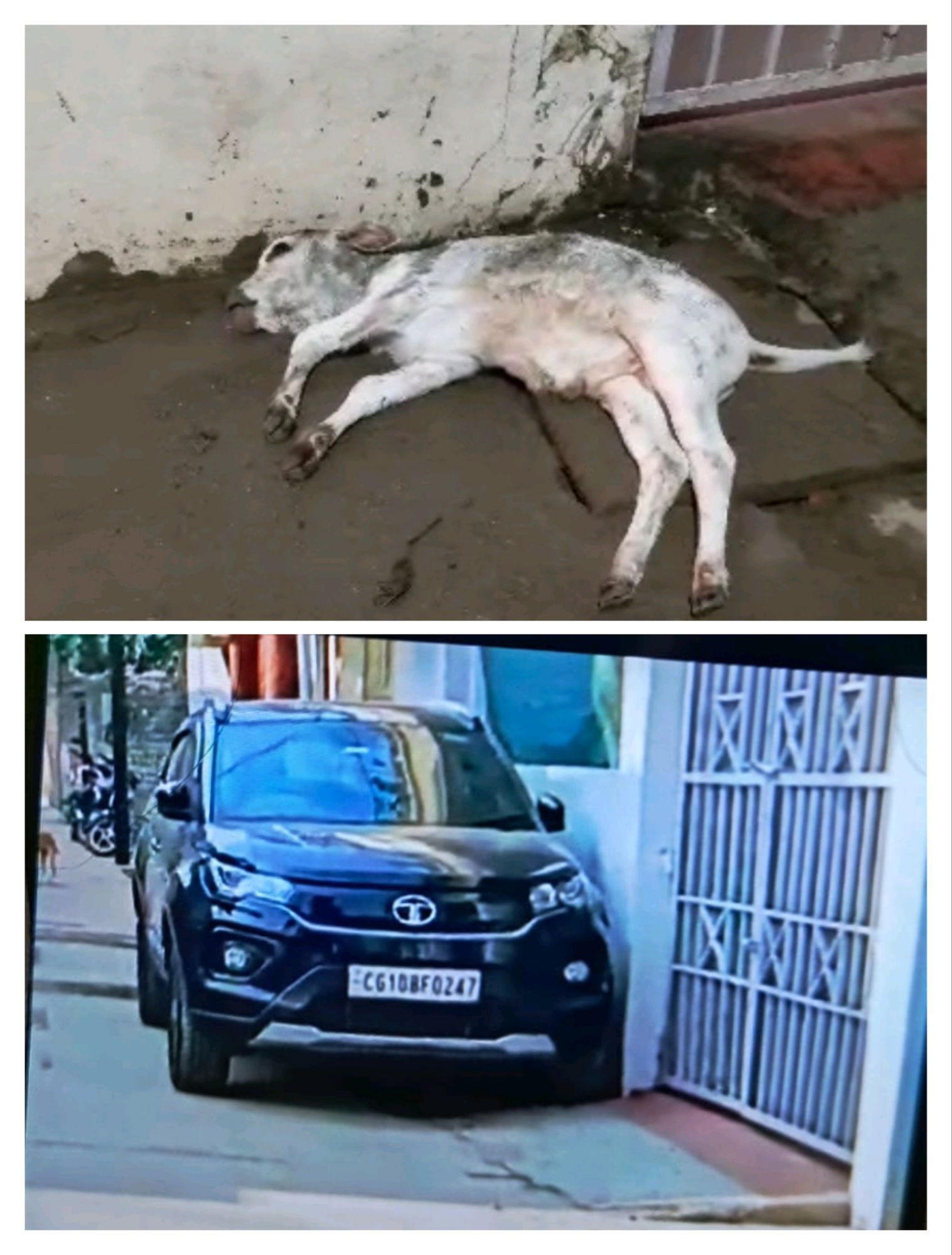 लगातार सड़को पर गौ वंश को कुचलने को लेकर गौ सेवको हिन्दू संगठन से जुड़े और आमलोगों में आक्रोश है। बता दे ब्लैक कलर की टाटा नक्शोंन क्रमांक, CG 10 BF 0247 है! जिसके बाद मौके से कार चालक फरार है!