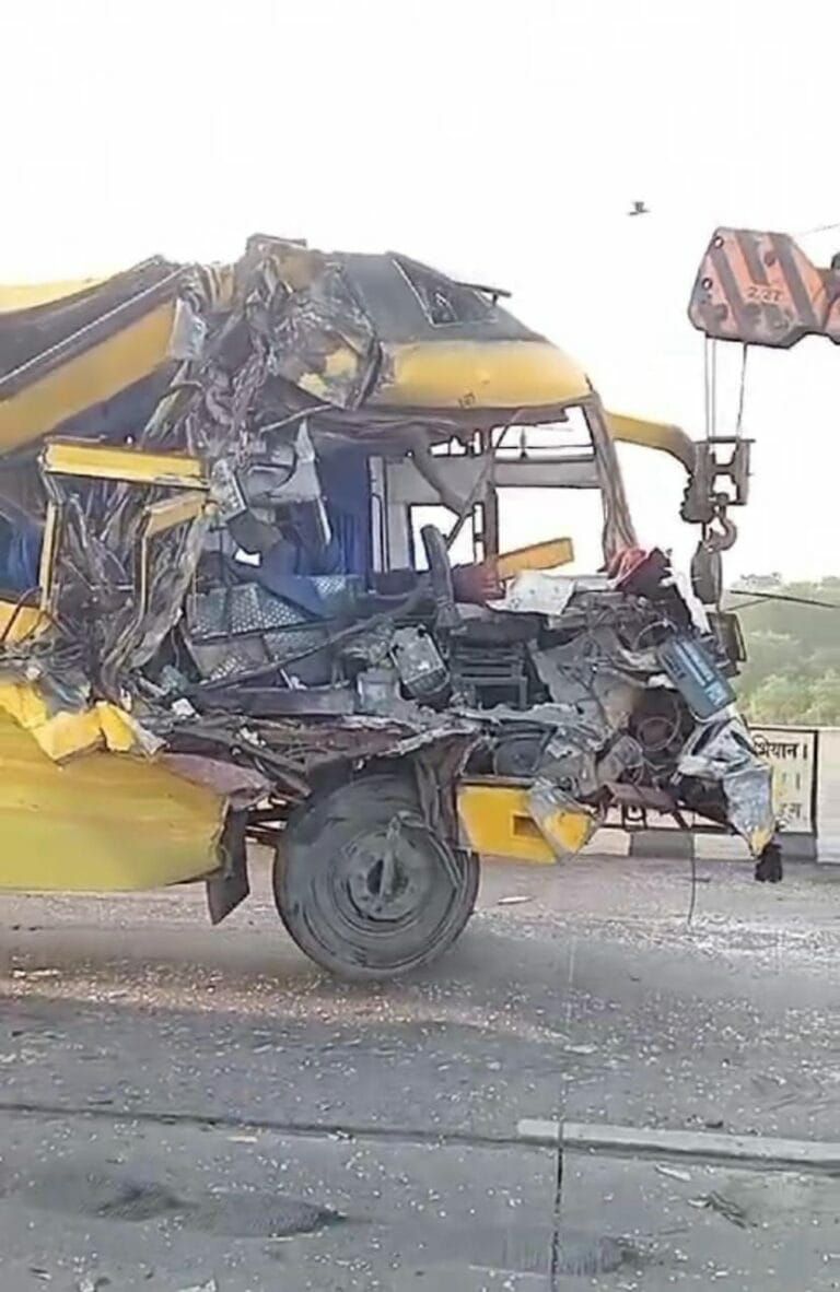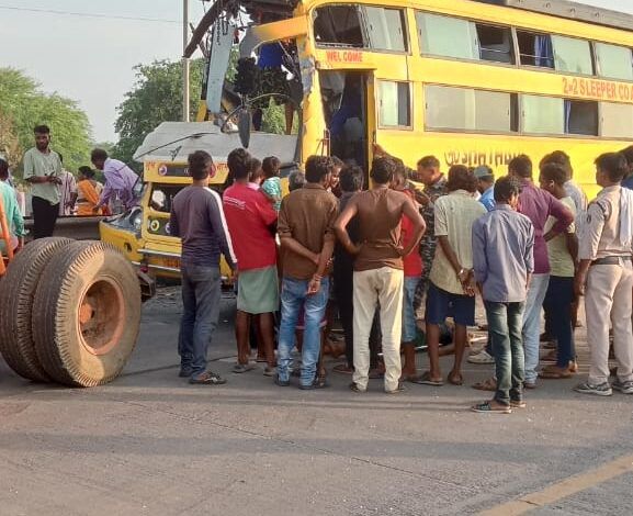जैसे ही बस नेशनल हाईवे के धौराभाठा ब्रिज के पास पहुंची, परिचालक ने वाहन पर से नियंत्रण खो दिया और बस खड़ी हाईवा से जा टकराई। टक्कर इतनी भीषण थी कि केबिन में सो रहे बस ड्राइवर घनश्याम चौहान की मौके पर ही मौत हो गई।
