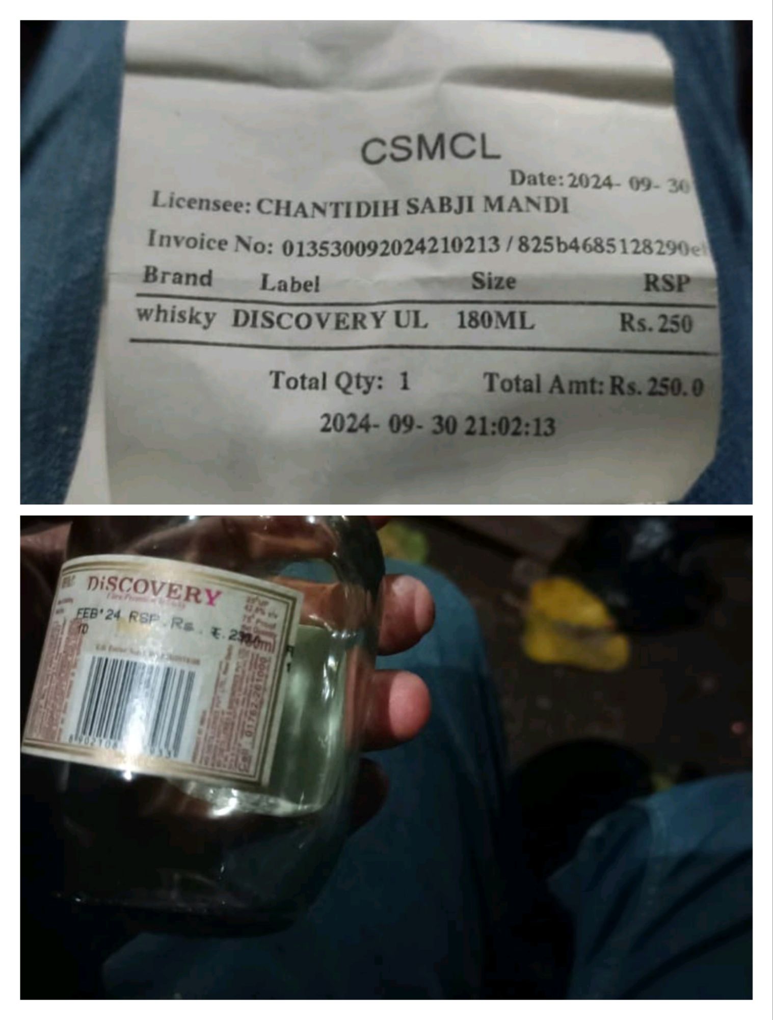 मामला चाटीडीह सब्जी मंडी के सामने शराब दुकान का है! विद्यानगर के एक मदिरा प्रेमी ने चाटीडीह शराब दुकान से डिस्कवरी का पौव्वा खरीदा तो उसे पाँच सौ के नोट से ढाई सौ काटकर ढाई सौ रुपये का बिल थमा दिया। पौव्वा में 230 रुपये प्रिंटबंकित होने पर उसने और साथी मदिरा प्रेमी ने जब 20 रुपये और लौटाइये 230 रूपये प्रिंट रेट लिखा है! तो काउंटर में बैठे ठेका कर्मी ने गाली गलौच कर जान से मारने की धमकी दी।