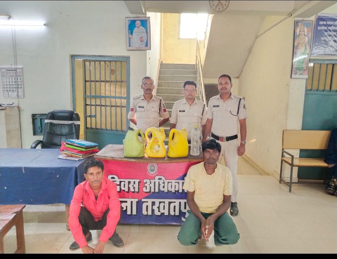 बिलासपुर,,,पुलिस अधीक्षक रजनेश सिंह (भा. पु . से.) द्वारा अवैध कार्यों में संलिप्त व्यक्तियों के विरुद्ध *प्रहार अभियान चलाया जा रहा है। इसके परिपालन में आज दिनांक 10.10.2024 को थाना प्रभारी तखतपुर के नेतृत्व में ग्राम परसाकापा एवं ग्राम चूलघट में अलग-अलग स्थान पर रेड कार्यवाही की गई, कार्यवाही के दौरान आरोपी हरिश्चंद्र केवट के कब्जे से 6 लीटर महुआ शराब एवं आरोपी महेश नट के कब्जे से 7 लीटर महुआ शराब कुल 13 लीटर महुआ शराब जप्त कर आरोपीगण के विरुद्ध धारा 34 (2) आबकारी अधिनियम के अंतर्गत कार्यवाही कर, रिमांड पर भेजा गया है।