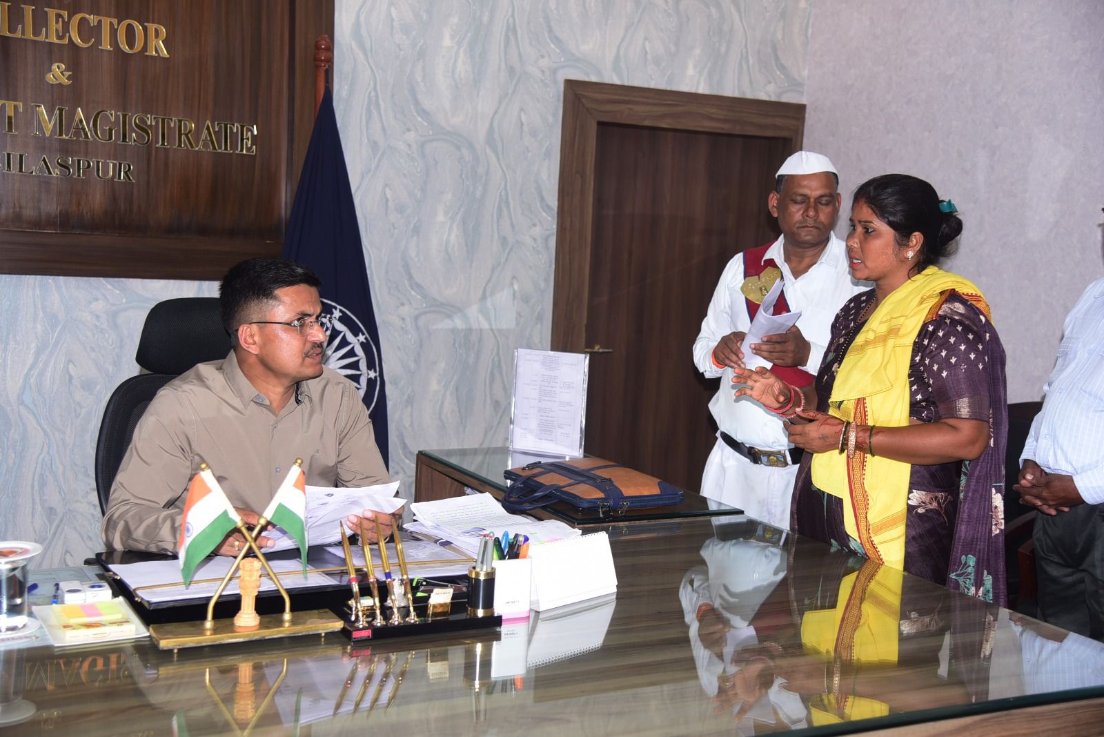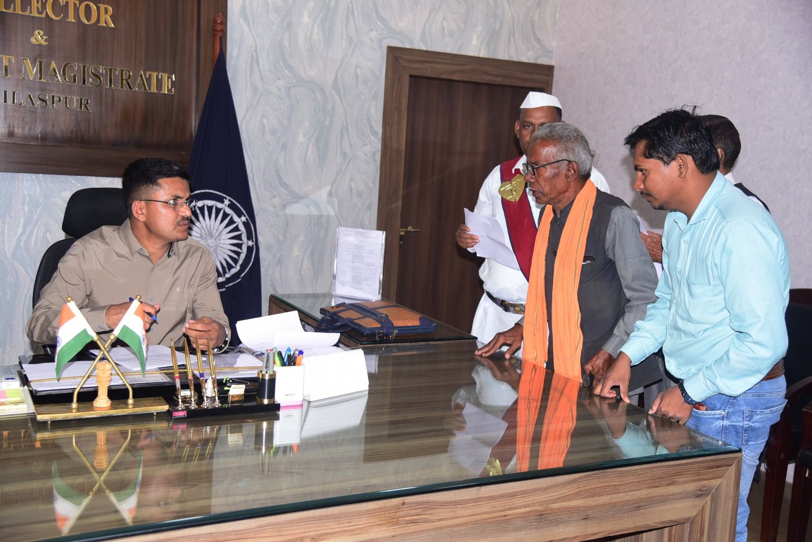 बिलासपुर,,, कलेक्टर अवनीश शरण ने आज साप्ताहिक जनदर्शन में दूर-दराज से आये लोगों की समस्याएं सुनी। कलेक्टर ने सभी की समस्याओं को इत्मीनान से सुना और निराकरण योग्य आवेदनों का मौके पर ही निराकरण किया। कलेक्टर ने संबंधित अधिकारियों को आवेदन भेजते हुए जल्द निराकरण करने के निर्देश दिए।