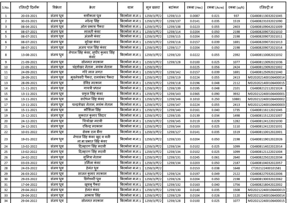बिलासपुर,,, आदिवासी जमीनों की अवैध खरीद- फरोख्त २ के मामलों में बढ़ोतरी देखी जा रही है, और यह घटना २ बिलासपुर के ग्राम बिरकोना की है, जहां आदिवासी भूमि को धड़ल्ले से भू माफियाओं द्वारा बेचा जा रहा है। यह मामला न केवल सरकारी नियमों की धज्जियां उड़ाने का उदाहरण है, बल्कि यह प्रशासन और संबंधित विभागों की अनदेखी का भी जीता जागता सबूत है। आदिवासी भूमि के संबंध में कठोर नियम और कानून बनाए गए हैं, जिनका उद्देश्य आदिवासियों की जमीन की सुरक्षा करना है। संविधान और राज्य कानूनों के तहत आदिवासी भूमि को गैर-आदिवासियों द्वारा खरीदा या बेचा नहीं जा सकता। इसके बावजूद, बिलासपुर में भूमि माफिया इन नियमों को धता बताकर आदिवासी भूमि को टुकड़ों में विभाजित कर अवैध रूप से बेच रहे हैं। इनमें सबसे चिंताजनक बात यह है कि अधिकतर खरीदार शासकीय कर्मचारी हैं, जो अपने परिवार के सदस्यों के नाम पर बेनामी सौदे करके इन जमीनों पर कब्जा जमाते हैं।