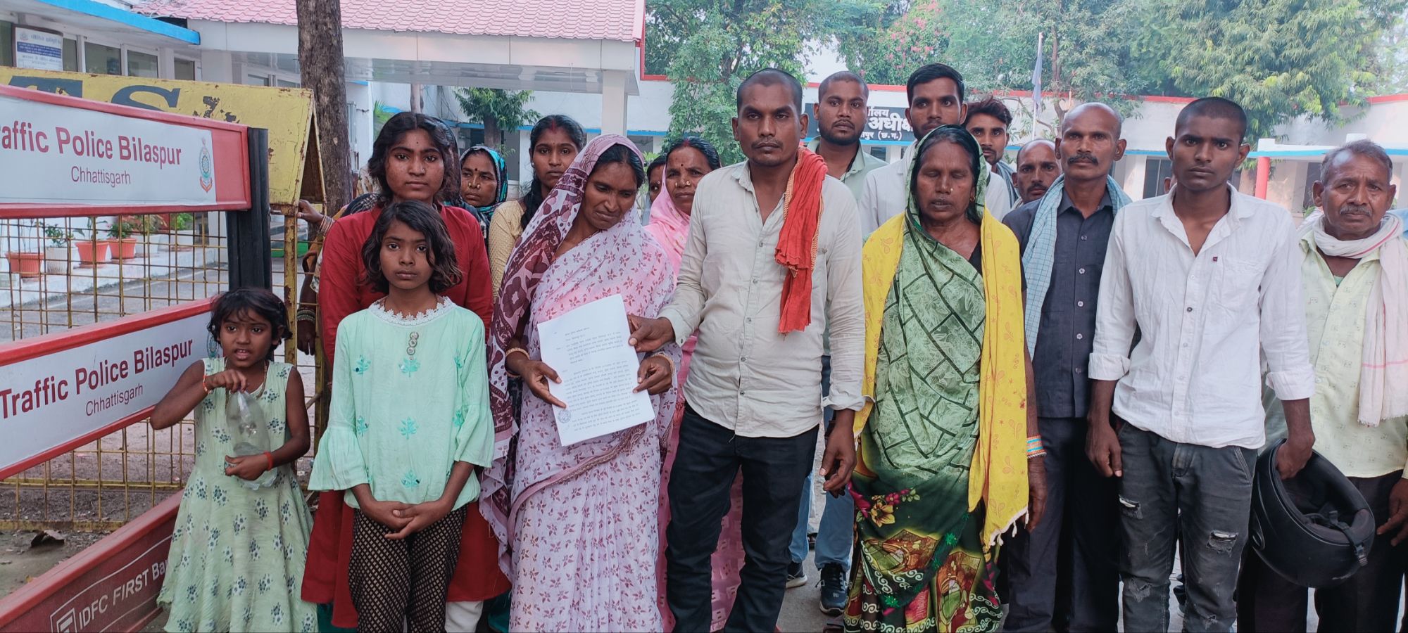 बिलासपुर,,, अपने पति के हत्या के मामले मे संलिप्त सभी आरोपियो की गिरफ्तारी नहीं होने को लेकर रोते बिलखते अपने बच्चों और परिजनों के साथ शिकायत लेकर पुलिस अधीक्षक कार्यालय पहुंची! जहाँ परिजनों ने न्याय की गुहार लगाई! आपको बता दे की बीते 24 अक्टूबर को पचपेड़ी थाना क्षेत्र के पतई डीह ग्राम पंचायत मे बबलू जांगड़े को उधार पर दिए हुए रकम को ना चुकाने के नाम पर धन्नू काठले और सुरेश काठले अपनी बाइक मे बिठा कर अपने घर ले गए और बबलू जांगड़े की बेरहमी से पिटाई कर दी इस बात की जानकारी मृतक के छोटे भाई को हुई तब वह भागते हुए धन्नू के घर पंहुचा जहाँ बबलू के भाई ने देखा की वहा पर मौजूद सभी लोगो के हाथ मे हथियार रखा हुआ था!