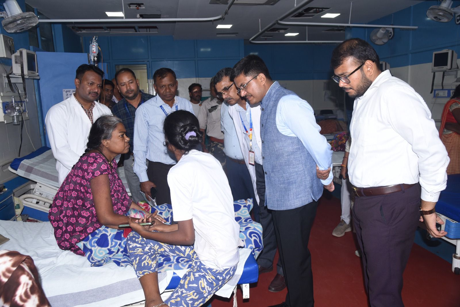 उन्होंने बताया कि डॉक्टर और कर्मचारी भी अच्छा व्यवहार करते हैं! कलेक्टर ने सेन्ट्रल किचन का भी मुआयना किया! कलेक्टर ने लेबर वार्ड, आपातकालीन वार्ड, ट्रायज, मेल-फिमेल मेडिकल वार्ड, सर्जिकल वार्ड, एमआरडी, लैब, जैव रसायन विभाग, एचआईवी जांच सेन्टर, किचन शेड, पेयिंग वार्ड, गार्डन आदि का निरीक्षण किया। उन्होंने पेयिंग वार्ड का मरम्मत जल्द कराने के निर्देश दिए। अस्पताल में नियमित साफ-सफाई रखने के निर्देश दिए।