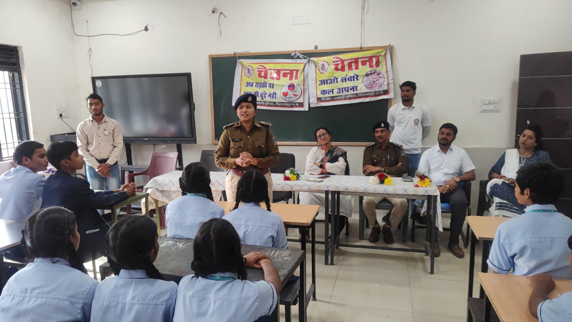 श्रीमान पुलिस अधीक्षक रजनेश सिंह के निर्देशन में बिलासपुर में चलाए जा रहे “चेतना अभियान” के तारतम्य में अतिरिक्त पुलिस अधीक्षक बिलासपुर श्रीमती अर्चना झा द्वारा महिला संबंधी अपराध, साईबर अपराध, नशा से दूर रहने तथा यातायात नियमो के संबंध में स्कूली छात्र/छात्राओ की दी गई जानकारी