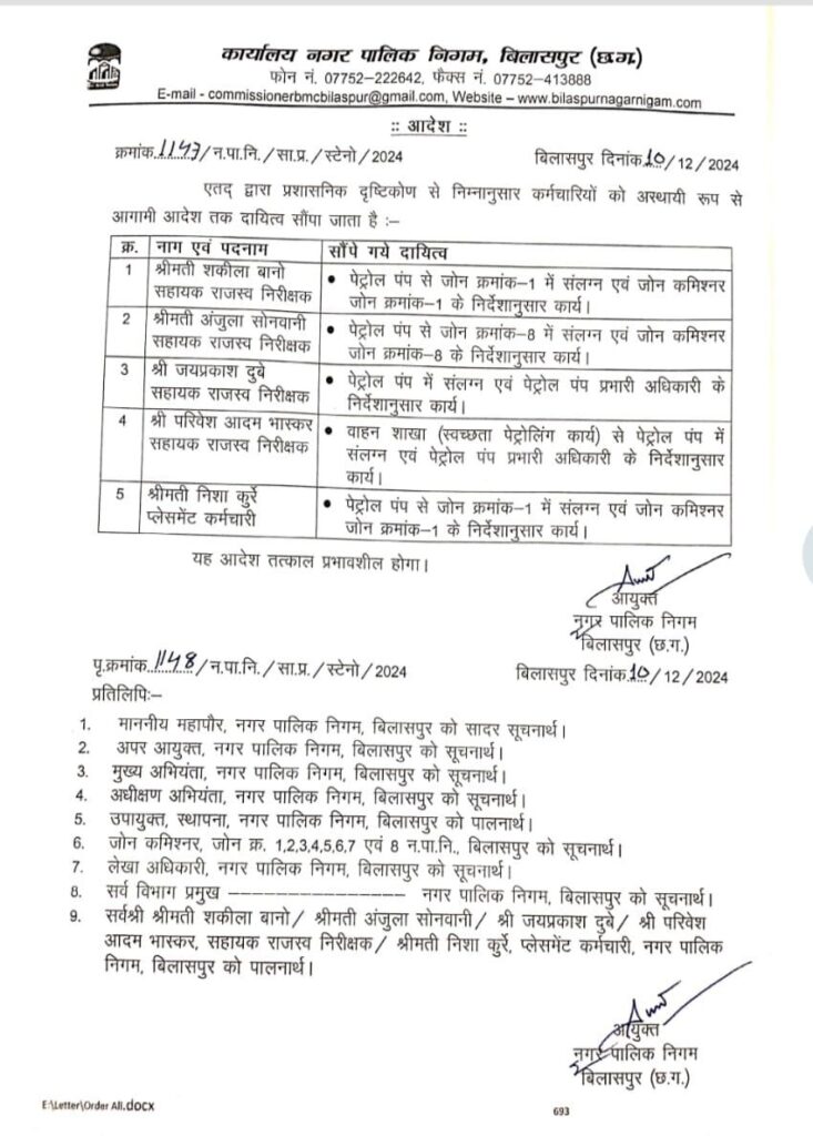 बिलासपुर,, नगर निगम के आदर्श पेट्रोल पम्प में डीजल पेट्रोल की अफरा तफरी को लेकर मचे बवाल के बाद निगम प्रशासन ने 3 महिला कर्मचारी समेत 5 कर्मचारियों को पेट्रोल पम्प से इधर से उधर कर दिया!