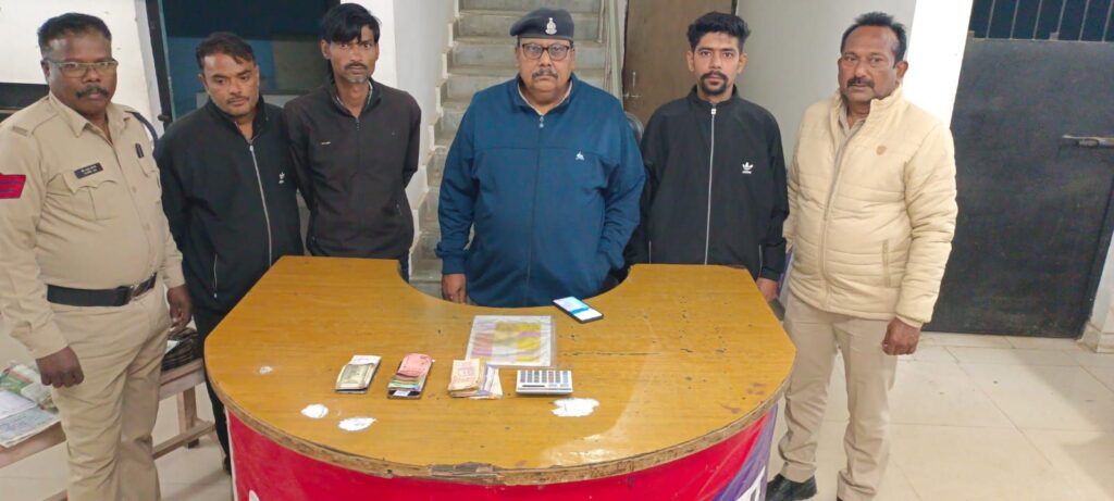 3.वेद राम साहू पिता रमेश साहू उम्र 33 साल पता राधा कृष्ण मंदिर के पीछे शंकर नगर थाना तोरवा बिलासपुर के विरुद्ध धारा 6 छ.ग. जुआ प्रतिषेध अधि. एवं 112 BNS कायम कर आरोपी के कब्जे से नगदी 13040 रुपए व सट्टा पटटी 2 नग मोबाइल और कैलकुलेटर जप्त किया गया आगे भी अवैध गतिविधियों पर कार्यवाही जारी रहेगी।