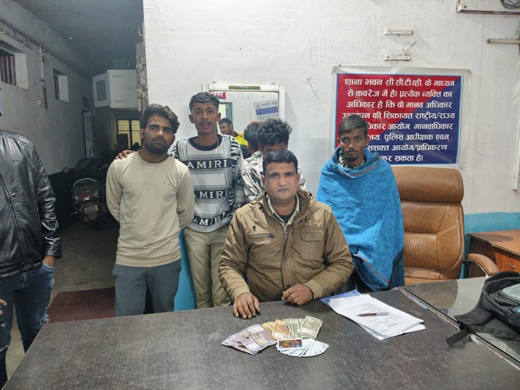 बिलासपुर,,, पुलिस द्वारा हार-जीत का दांव लगाकर जुआ/सट्टा खेल रहे जुआरियों के विरुद्ध लगातार कार्यवाही कर रही है इसी तारतम्य में पुलिस अधीक्षक जिला बिलासपुर श्री रजनेश सिंह के निर्देश पर बिलासपुर के शहरी तथा सभी ग्रामीण थानो में लगातार जुआ/सट्टा/चाकूबाजी करने वालों के विरुद्ध कार्यवाही की जा रही है! इसी परिप्रेक्ष्य में दिनांक 15.12.2024 के शाम थाना प्रभारी कोनी नवीन कुमार देवांगन को सूचना मिला कि बांबे आवासपारा देवनगर कोनी खेत के पास कुछ जुआरीयान रूपए पैसे का हार-जीत का दांव लगाकर जुआ खेल रहे हैं सूचना मिलने पर श्रीमान पुलिस अधीक्षक महोदय बिलासपुर श्री रजनेश सिंह द्वारा जुआ सट्टा पर कार्यवाही करने के निर्देशन पर अति .पुलिस अधीक्षक (शहर) राजेन्द्र जायसवाल, नगर पुलिस अधीक्षक कोतवाली अक्षय प्रमोद के मार्गदर्शन में थाना सिटी कोतवाली पुलिस की टीम द्वारा मुखबीर सूचना के आधार पर तत्काल कोनी पुलिस टीम द्वारा मुखबिर के बताये स्थान पर चारों तरफ से घेराबंदी कर मौके पर रेड कार्यवाही किया गया, जहां मौके पर जुआ खेलते 4 आरोपीगण – 01. धनेश्वर दास मानिकपुरी पिता सुंदर दास मानिकपुरी उम्र 37 साल साकिन बंगालीपारा सरकंडा, 02. निखिल राव उर्फ निक्कू राव पिता नरेंद्र राव उम्र 22 साल साकिन देव नगर कोनी 03. प्रियांशु यादव उर्फ लक्की यादव पिता मदन लाल यादव उम्र 25 साल साकिन देव नगर कोनी 04. अमन केंवट उर्फ बांदा पिता अशोक केवट उम्र 19 साल साकी देवनगर कोनी थाना कोनी जिला बिलासपुर (छ.ग) के कब्जे से मौके पर फड़ से कुल 3400 रुपए एवं ताश के 52 पत्ते, बैठने का तालपतरी, प्रकाश के लिए मोमबत्ती, मिलने पर वजह सबूत जप्त कर कब्जा पुलिस किया गया। 04 जुआरीयों के विरुद्ध वजह सबूत के आधार पर अपराध पंजीबद्ध कर गिरफ्तार कर विधिवत् कार्यवाही किया गया। उक्त कार्यवाही में थाना प्रभारी नवीन कुमार देवांगन के मार्गदर्शन में सउनि सुरेंद्र तिवारी, प्रधान आरक्षक अशफाक खान, आरक्षक थामेंद्र रातरे, दीपक मरावी, उदय पाटले, राकेश खांडे का विशेष योगदान रहा।