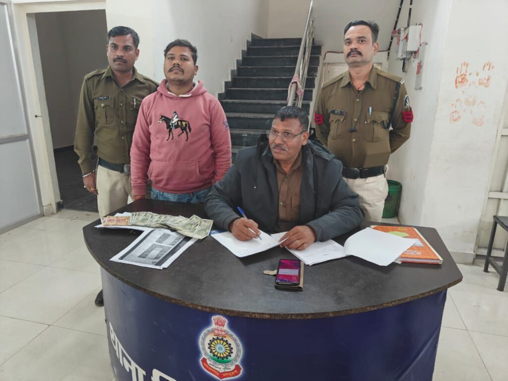 बिलासपुर,,, सिविल लाइन पुलिस ने सट्टा के खिलाफ कार्रवाई करते हुए एक सटोरिया को पकड़ने में सफलता पाई है।वही पुलिस इस सटोरिया के पास नगद रकम सट्टा पट्टी और मोबाइल फोन बरामद कर जप्त किया।सिविल लाइन पुलिस से मिली जानकारी के अनुसार दिनांक 21.12.2024 को उपरोक्त आरोपी कल्याण सट्टा नाम से अंको के माध्यम से हारजीत का दाव लगाकर सट्टा लिख रहा था। मुखबीर से प्राप्त सूचना के आधार पर आकाश सारथी पिता राजेश सारथी उम्र 28 साल नि० दुर्गा मंदीर के पास, कस्तुरबा नगर थाना सिविल लाईन जिला बिलासपुर छ०ग० को गुरुद्वारा के सामने सिन्धी कॉलोनी थाना सिविल लाईन के पास से गिरफ्तार किया गया। आरोपी से पूछताछ करने पर मोबाईल नंबर धारक व्यक्ति कथित खाईवाल के कहने पर तथा उससे मिलकर कर सट्टा पट्टी लिखना, जिसके एवज में प्रतिदिन कमीशन के रूप में नगदी रकम प्राप्त होना बताया। आरोपी के बताये अनुसार प्रकरण में मोबाईल नंबर धारक व्यक्ति कथित खाईवाल को भी आरोपी बनाया गया है। आरोपियो के विरुध्द जुआ अधिनियम तथा संगठित अपराध की धारा के अंतर्गत कार्रवाई की गई।
