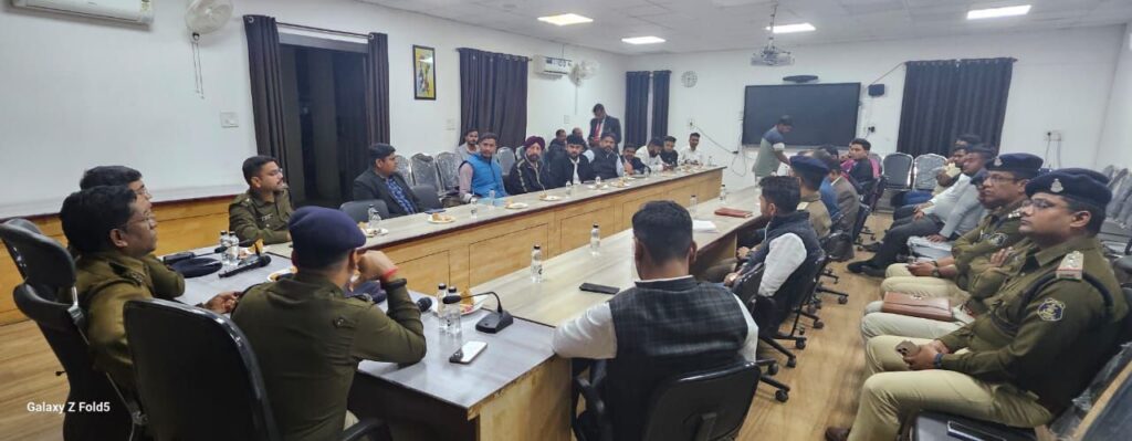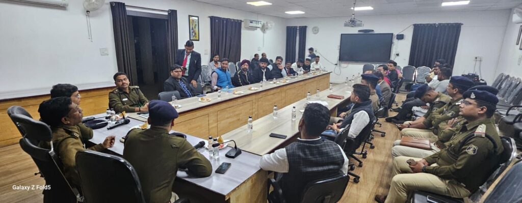 बिलासपुर,,, पुलिस लाइन स्थित बिलासागुडी में शहर के सभी होटल,रेस्टोरेंट,मैरिज पैलेस एवं आगामी नए साल पर कार्यक्रम आयोजित करने वाली सभी संस्थाओं की मीटिंग पुलिस अधीक्षक रजनेश सिंह भापुसे के निर्देश मे अतिरिक्त पुलिस अधीक्षक (शहर) राजेंद्र जायसवाल,अतिरिक्त पुलिस अधीक्षक (सरकंडा) उदयन बेहार,नगर पुलिस अधीक्षक (कोतवाली) अक्षय साबद्रा,प्रशिक्षु (आईपीएस) सुमित कुमार, एसडीम बिलासपुर पियुश तिवारी, तहसीलदार बिलासपुर के द्वारा ली गई मीटिंग में आगामी नव वर्ष के दौरान 31 दिसंबर को होने वाले कार्यक्रमों के संबंध में आवश्यक दिशा निर्देश दिए गये