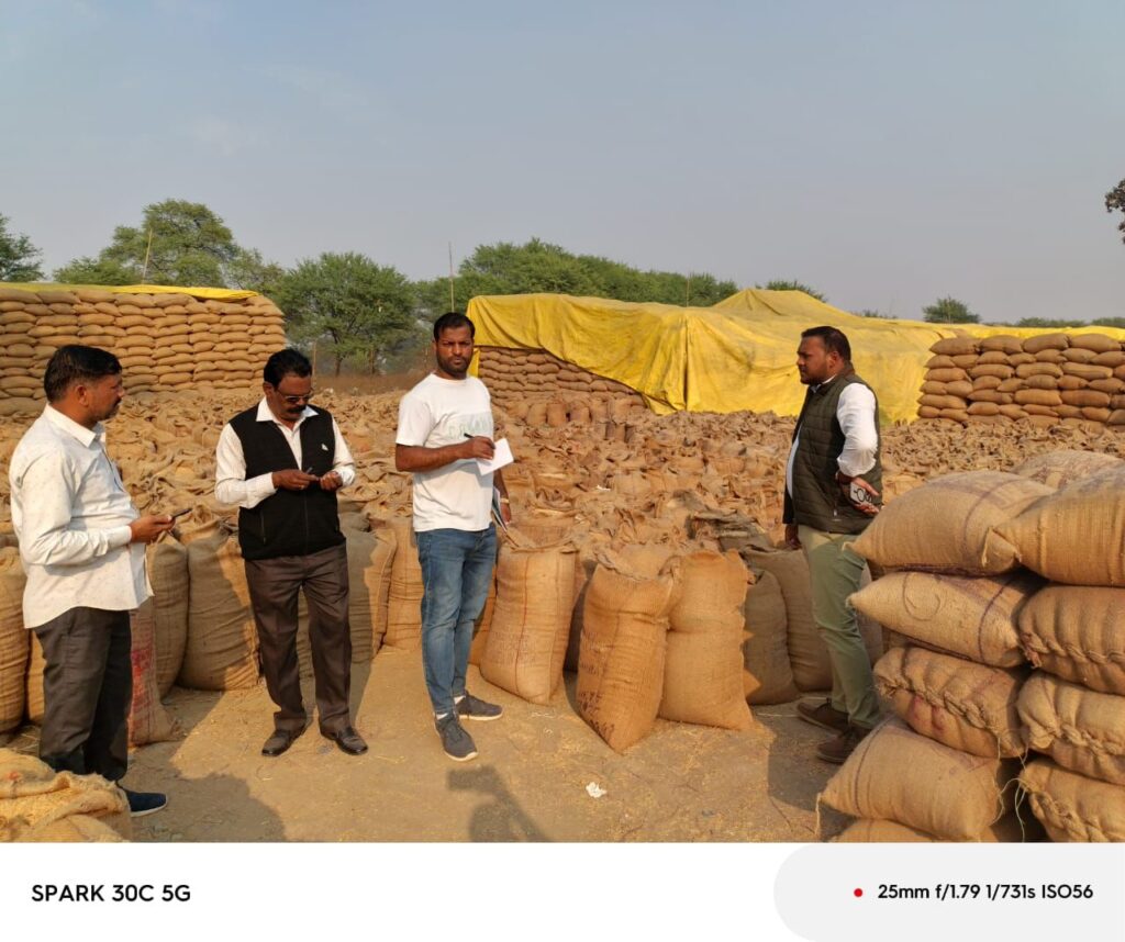 धान उपार्जन केन्द्र सोन तहसील पचपेड़ी की जाँच तहसीलदार एवं खाद्य विभाग द्वारा करते हुए उपार्जन केन्द्र का भौतिक सत्यापन किया गया! जाँच के दौरान केन्द्र परिसर में उपलब्ध समस्त धान की गणना की गई एवं बोरो का रैण्डम वजन किया गया! केन्द्र में भौतिक रूप से उपलब्ध धान का मिलान ऑनलाईन प्रदर्शित मात्रा से करने पर समिति में 500 कट्टी धान अधिक पाया गया! उपरोक्तानुसार अधिक प्राप्त धान को जप्त किया जाकर समिति के पदाधिकारियों के विरूद्ध प्रकरण निर्मित किया गया है! धान उपार्जन केन्द्र कौडिया तहसील सीपत की जॉच तहसीलदार एवं खाद्य विभाग द्वारा करते हुए उपार्जन केन्द्र का भौतिक सत्यापन किया गया! जाँच के दौरान केन्द्र परिसर में उपलब्ध समस्त धान की गणना की गई एवं बोरो का रैण्डम वजन किया गया! केन्द्र में भौतिक रूप से उपलब्ध धान का मिलान ऑनलाईन प्रदर्शित मात्रा से करने पर समिति में 230 क्विंटल धान अधिक पाया गया! उपरोक्तानुसार अधिक प्राप्त धान को जप्त किया जाकर समिति के पदाधिकारियों के विरूद्ध प्रकरण निर्मित किया गया है! धान उपार्जन केन्द्र बोडसरा तहसील बोदरी की जाँच तहसीलदार एवं खाद्य विभाग द्वारा करते हुए उपार्जन केन्द्र का भौतिक सत्यापन किया गया! जाँच के दौरान केन्द्र परिसर में उपलब्ध समस्त धान की गणना की गई एवं बोरो का रैण्डम वजन किया गया! केन्द्र में भौतिक रूप से उपलब्ध धान का मिलान ऑनलाईन प्रदर्शित मात्रा से करने पर समिति में 762.6 क्विंटल धान अधिक पाया गया! उपरोक्तानुसार अधिक प्राप्त धान को जप्त किया जाकर समिति के पदाधिकारियों के विरूद्ध प्रकरण निर्मित किया गया है!