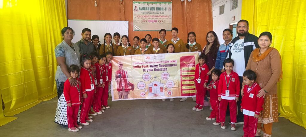 इसी क्रम में आज प्रधान डाकघर बिलासपुर द्वारा महर्षि विद्या मंदिर राजेंद्र नगर एवं स्वामी आत्मानंद इंग्लिश मीडियम स्कूल में शिविर का आयोजन किया गया! शिविर में सुकन्या , पीपीएफ एवं एसबी के 55 खाते प्राप्त किए गए! उक्त आयोजन में डाक विभाग के द्वारा योजनाओं के क्रियान्वयन के साथ साथ वित्तीय जागरूकता, बचत का महत्व एवं साईबर फ्रॉड जैसी अति महत्वपूर्ण जानकारी भी प्रदान की जा रही है! शिविर के सफ़ल आयोजन में प्रिंसिपल महर्षि विद्या मंदिर चरण सिंह यादव एवं स्वामी आत्मानंद इंग्लिश मीडियम स्कूल की शिल्पा मैडम एवं उनके समस्त टीचर और स्टाफ का भरपूर सहयोग रहा!
